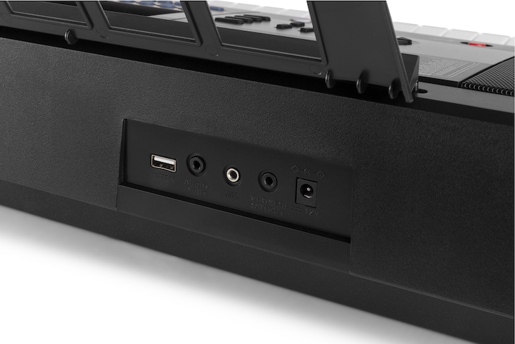 Dieses Keyboard ist mit 2 eingebauten Lautsprechern ausgestattet und bietet zudem mehrere 3,5 mm Klinkeneingänge wie etwa einen Mikrofoneingang, einen Aux Input für die Wiedergabe externer Geräte (Smartphone, Tablet uvm) und einem Kopfhörer Ausgang, mit welchem ein leises Üben mit Kopfhörern möglich wird. Über diesen Ausgang kann das Keyboard sogar an ein Mischpult oder eine professionelle Soundanlage angeschlossen und auf der Bühne verwendet werden.Â