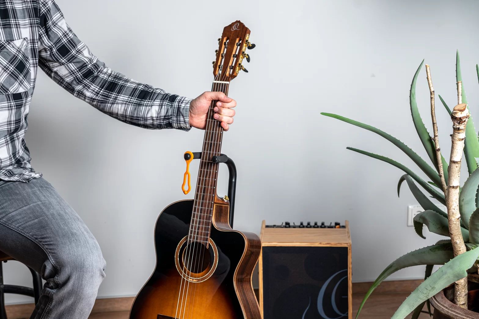 Der ORTEGA Metal-Guitar-Stand - Black/Orange ist ein unverzichtbares Zubehör für alle Gitarristen und Bassisten. Robust, praktisch und transportfreundlich – der perfekte Ständer, um dein Instrument jederzeit geschützt und griffbereit abzustellen.