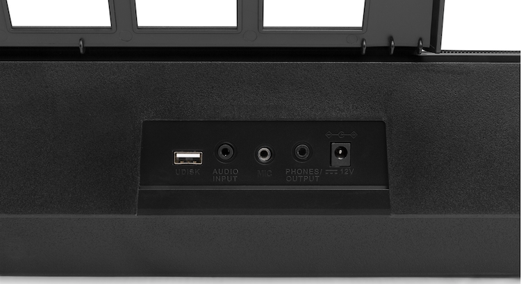Dieses Keyboard ist mit 2 eingebauten Lautsprechern ausgestattet und bietet zudem mehrere 3,5 mm Klinkeneingänge wie etwa einen Mikrofoneingang, einen Aux Input für die Wiedergabe externer Geräte (Smartphone, Tablet uvm) und einem Kopfhörer Ausgang, mit welchem ein leises Üben mit Kopfhörern möglich wird. Über diesen Ausgang kann das Keyboard sogar an ein Mischpult oder eine professionelle Soundanlage angeschlossen und auf der Bühne verwendet werden.Â