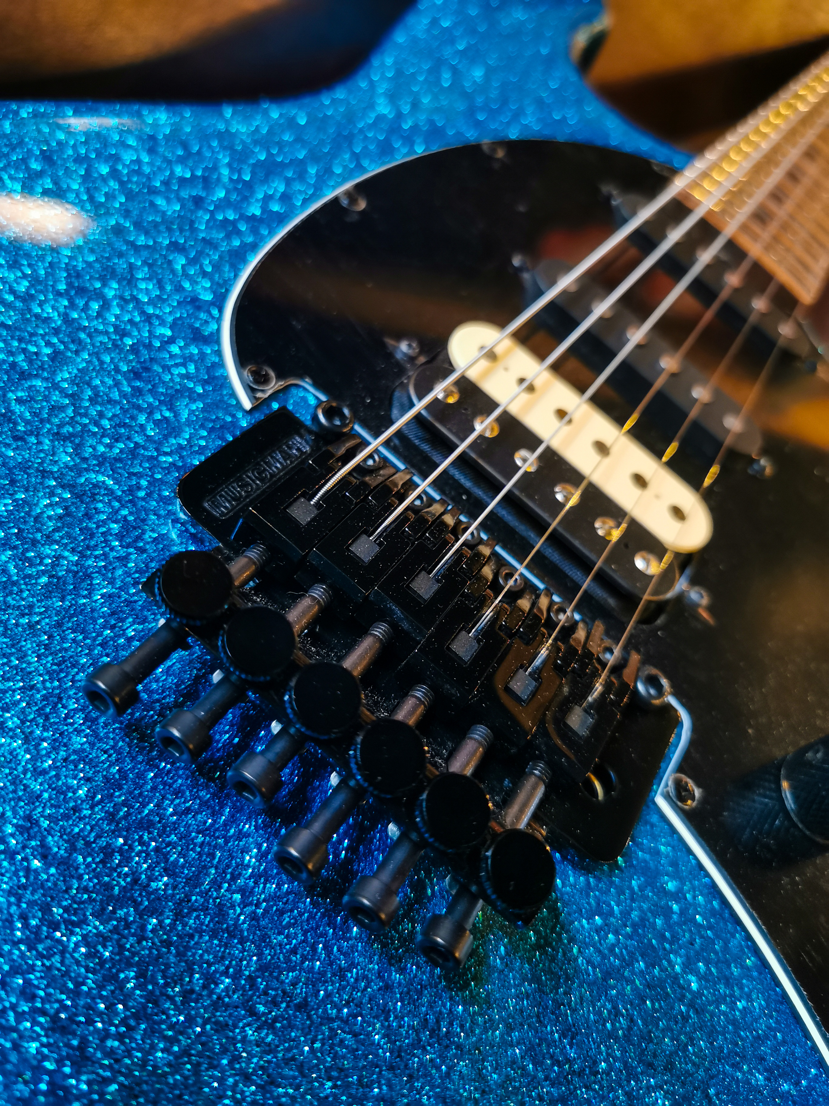 Das Floyd HSS Bull Head Modell in der Farbe Blue Sparkle ist auf 65 Instrumente Weltweit limitiert! Die Collection wird aus feinsten Klanghölzern hergestellt daher sind die BFR Instrumente ein Highlight in Klang und Optik. Der Hersteller dieser E-Gitarre ist Music Man sie ist mit einen Erlekoprus, einem Griffbrett aus Ahorn, HSS Tonabnehmern und mit Floyd Rose ausgestattet.Â